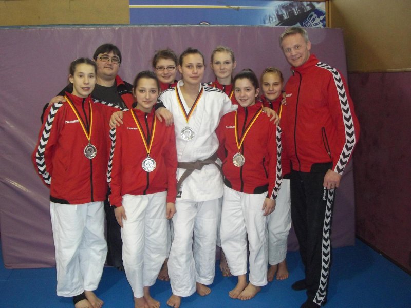 Doch die Trainer unterbanden die Jubelszenen schnell wieder, da es nun darum ging, die notwendige Spannung und Konzentration für das Finale wieder herzustellen. Hier unterlag das Team vom Sievekingdamm dann aber deutlich mit 1:6 (10:60) gegen den MTV Vorsfelde. Die favorisierte niedersächsiche Mannschaft, die in ihren Reihen gleich 4 Medaillengwinnerinnen der Deutschen Meisterschaften und 3 Starterinnen der U17-Europameisterschaften hatte, war für die Mädchen vom Sievekingdamm diesmal noch eine Nummer zu groß. Blerina, Lina, Rebecca, Melissa und Renée unterlagen trotz guter kämpferischer Leistungen, während Beke mit einem Uchi-Mata-Gaeshi die amtierende Deutsche Meisterin bezwang und den Ehrenpunkt für die HT16erinnen rettete.