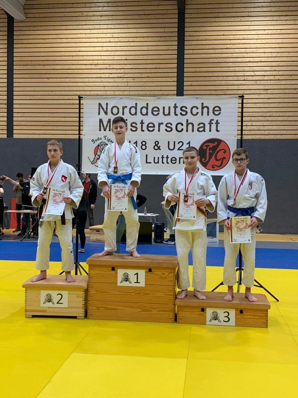 Für Patryk, der in der Gewichtsklasse bis 46 Kg kämpfte, war dies die erste Norddeutsche Meisterschaft nach dem Wechsel in die Altersklasse U18. Bereits im ersten Kampf wurde klar, dass in der neuen Altersklasse die Kampfrichter schneller Strafen verteilen werden, was Patryk in eine unangenehme Situation brachte. Bereits nach der Hälfte der regulären Kampfzeit hatte er zwei Bestrafungen für „Scheinansätze" erhalten und konnte ich kein weiteres Shido erlauben, denn das hätte die Disqualifikation bedeutet. Dies konnte Patryk aber realisieren und machte (fast) keine riskanten Ansätze mehr. Eine Wertung konnte keiner der beiden erzielen und somit ging es in den Golden Score. Auch hier dauerte es nochmal 3 Minuten bis es zu einer Entscheidung kam. Und diese fiel zu Patryks Gunsten aus. Nach einem Ansatz seines Gegners konnte Patryk ihn mit einer „Gegendrehtechnik" kontern und erhielt hierfür einen Waza-Ari. Damit stand Patryk im Halbfinale. Auch dieser Kampf wurde spektakulär. Nach wenigen Sekunden musste Patryk eine Wertung gegen sich hinnehmen, konnte seinen Gegner aber direkt mit dem nächsten Ansatz per Seoi-nage Ippon werfen. 15 Sekunden Kampf mit 2 Wertungen, gibt es auch nicht alle Tage. Das Finale war erreicht. Die Taktik für diesen Kampf war relativ schnell klar und es lag an dem jungen Athleten diese nun umzusetzen. Und das tat er richtig gut. Der Gegner konnte seine Stärken nicht nutzen und Patryk setzte seine stärkste Waffe, den Bodenkampf, effektiv ein. Nach ca. 3 Minuten Kampfzeit zwang Patryk seinen Gegner durch eine Würgetechnik zur Aufgabe. Der Titel ging an die HT16 J